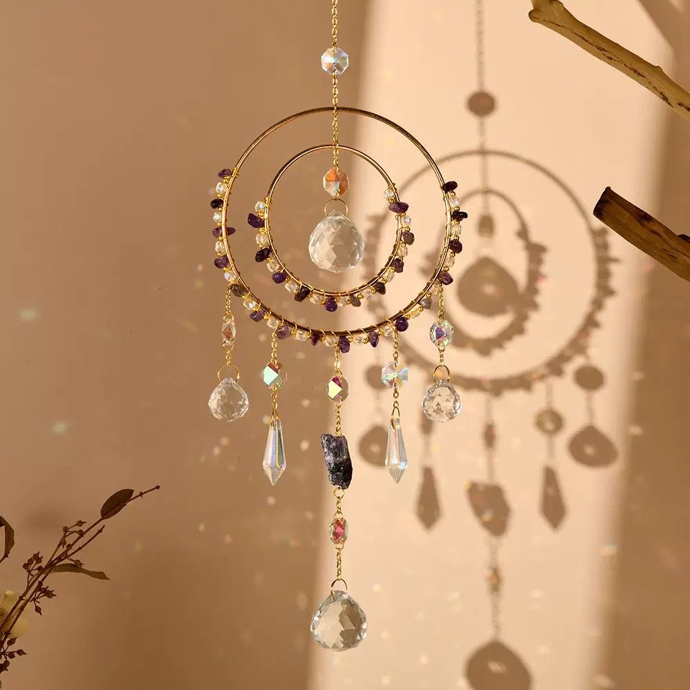 Un atrapasol es un prisma de luz decorativo que refracta rayos solares en destellos de colores. Funciona como una herramienta de decoración energética que aporta belleza y propósito al hogar.