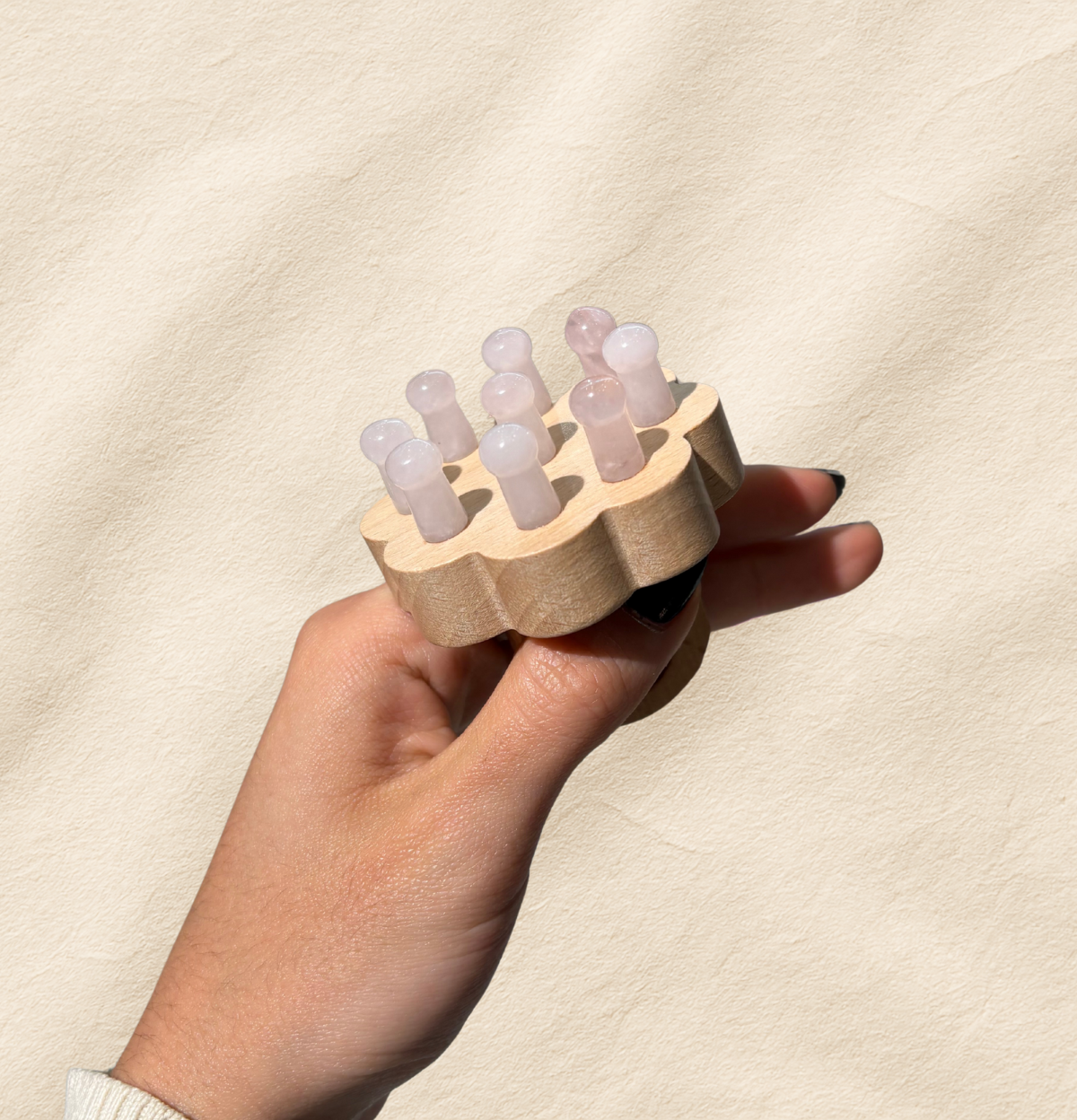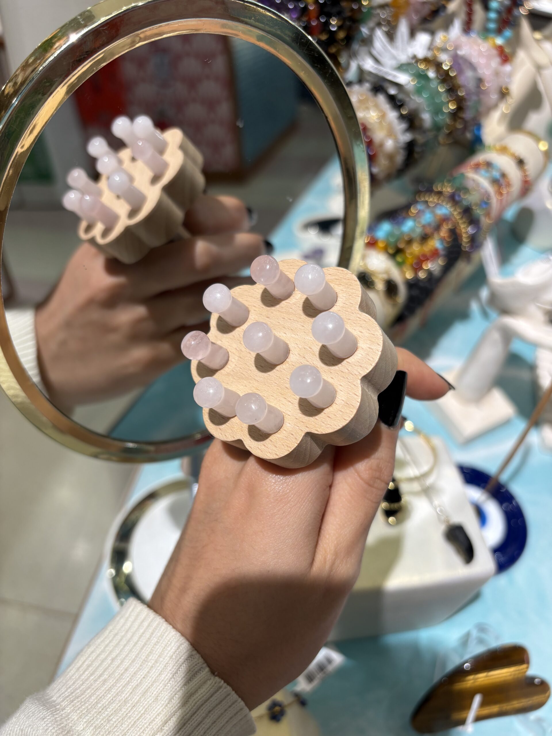 Masajeador capilar en cuarzo pensado para convertir el momento de lavar o peinar tu cabello en un pequeño ritual de relajación y autocuidado. Sus puntas suaves y la energía del cuarzo ayudan a estimular el cuero cabelludo, favorecer la circulación y liberar tensión, dejando una sensación de frescura y bienestar.