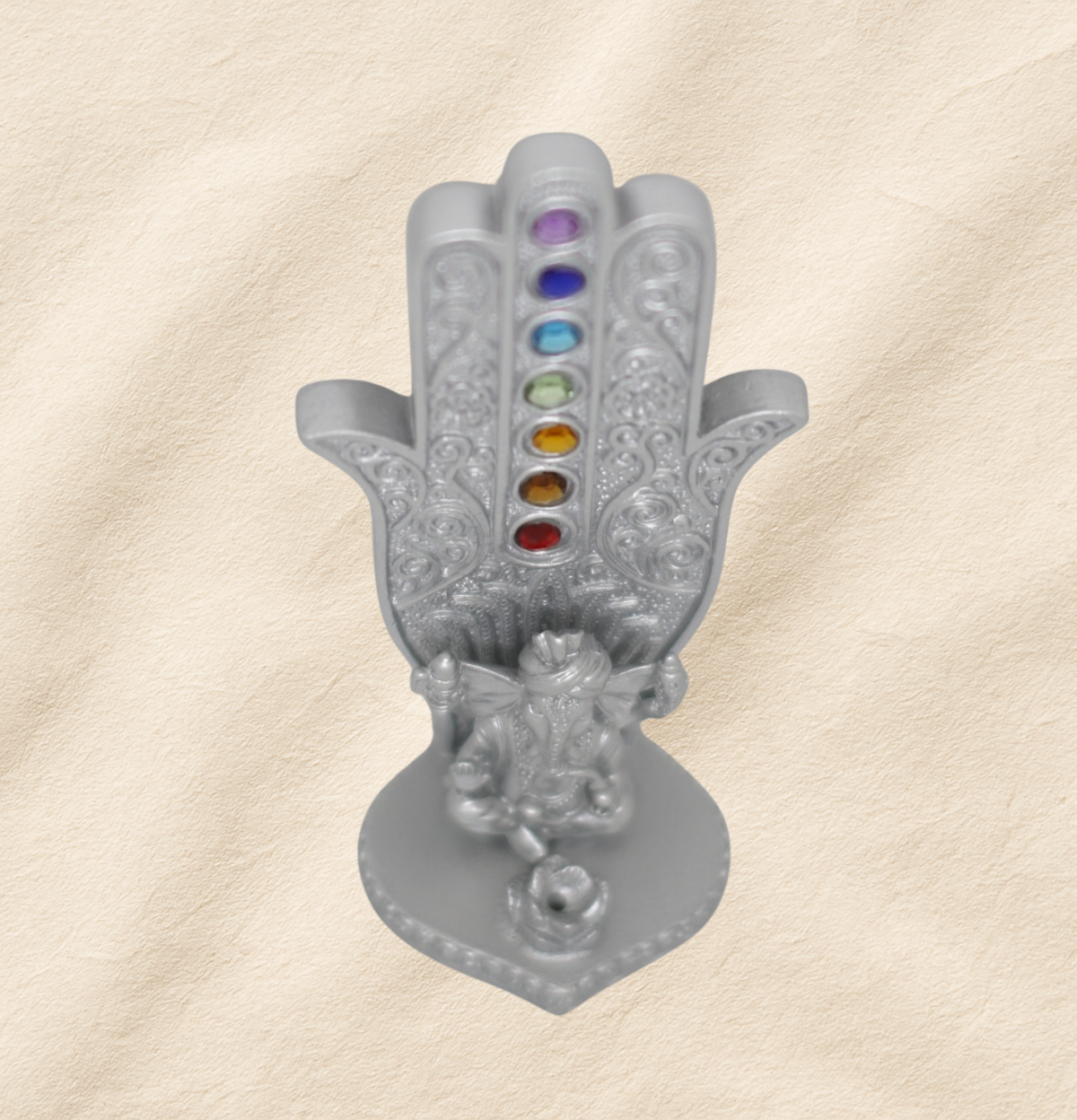 Portaincienso en forma de mano con 7 chakras, ideal para sostener tus varitas mientras limpias y armonizas tu espacio. Las piedras de color acompañan a equilibrar la energía y la figura decorativa aporta protección y belleza a tu altar o rincón favorito.