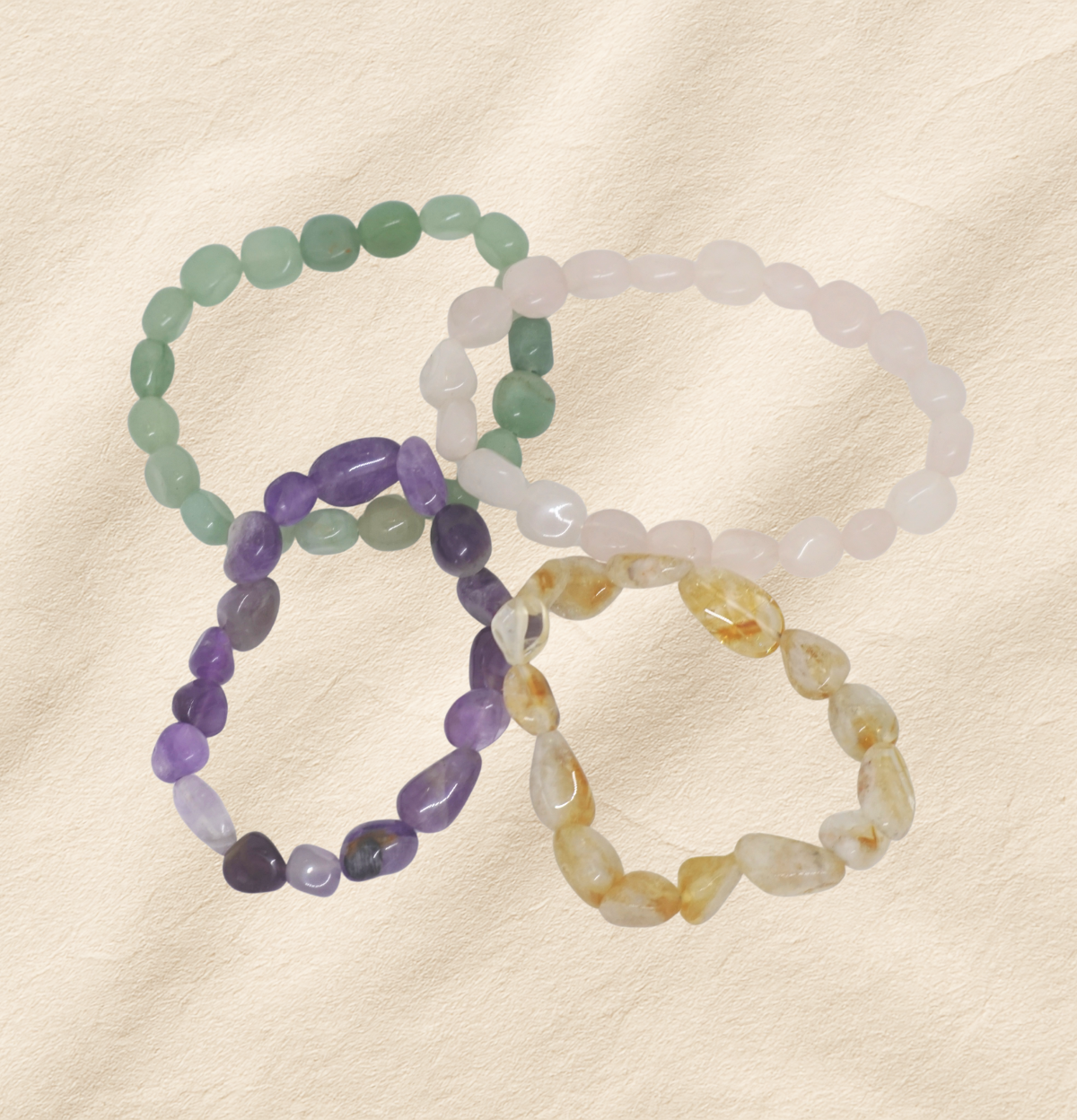 Pulseras en cuarzo pensadas para acompañarte todos los días como pequeños amuletos de luz, protección y equilibrio. Cada piedra tiene su propia energía: puedes elegir cuarzo rosa para el amor propio, amatista para la calma, cuarzo cristal para claridad, ojo de tigre para fuerza y enfoque, entre otros, y llevar en tu muñeca la intención que quieras manifestar en tu día.✨